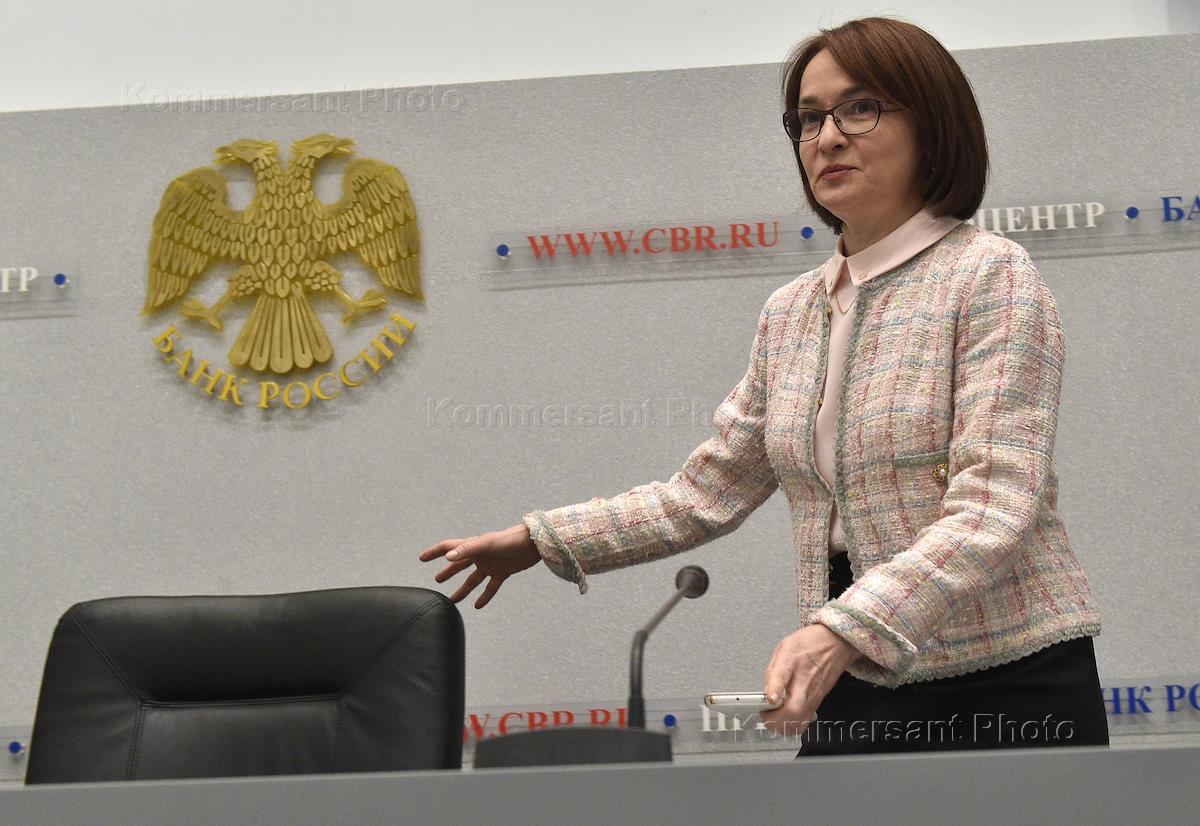 Chairwoman of the Russian Central Bank Elvira nabiullina is during the press-conference.