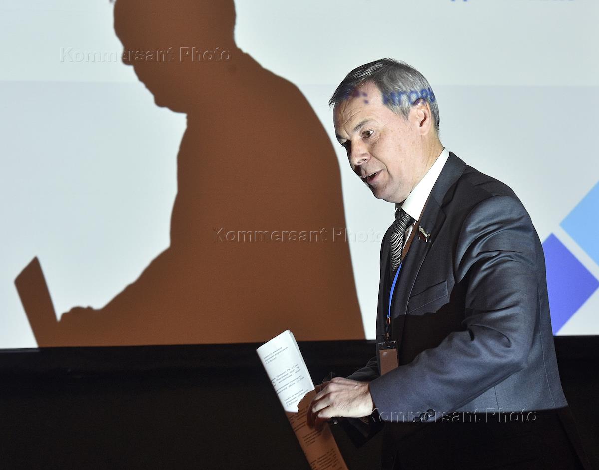 The third congress of the Russian association of political consultants held in 'President-hotel'. Chairman of the Russian ecological party 'Zelyonye' Anatoly Panfilov is during the congress.