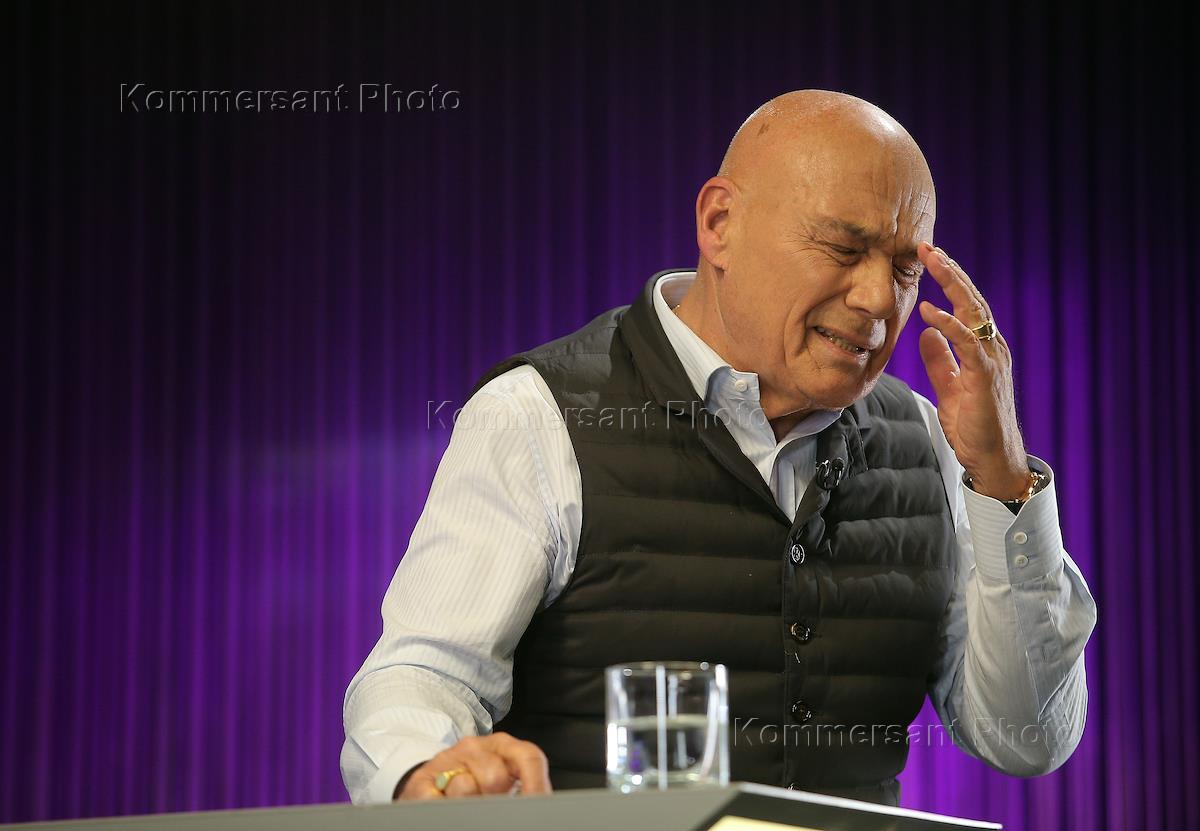 Дебаты с участием политика Алексея Навального и телеведущего Владимира Познера прошли в прямом эфире телеканал "Дождь". Телеведущий Владимир Познер во время дебатов.