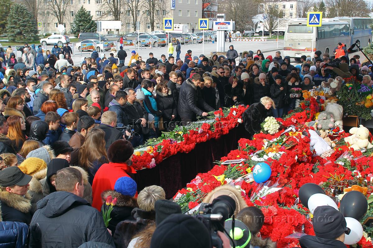 Жители Ростова-на-Дону несут цветы к зданию аэропорта Ростова-на-Дону, где потерпел крушение самолет Boeing 737 авиакомпании Flydubai, выполнявшего рейс FZ981 по маршруту "Дубай - Ростов-на-Дону". В авиакатастрофе погибли 55 пассажиров и 7 членов экипижа.