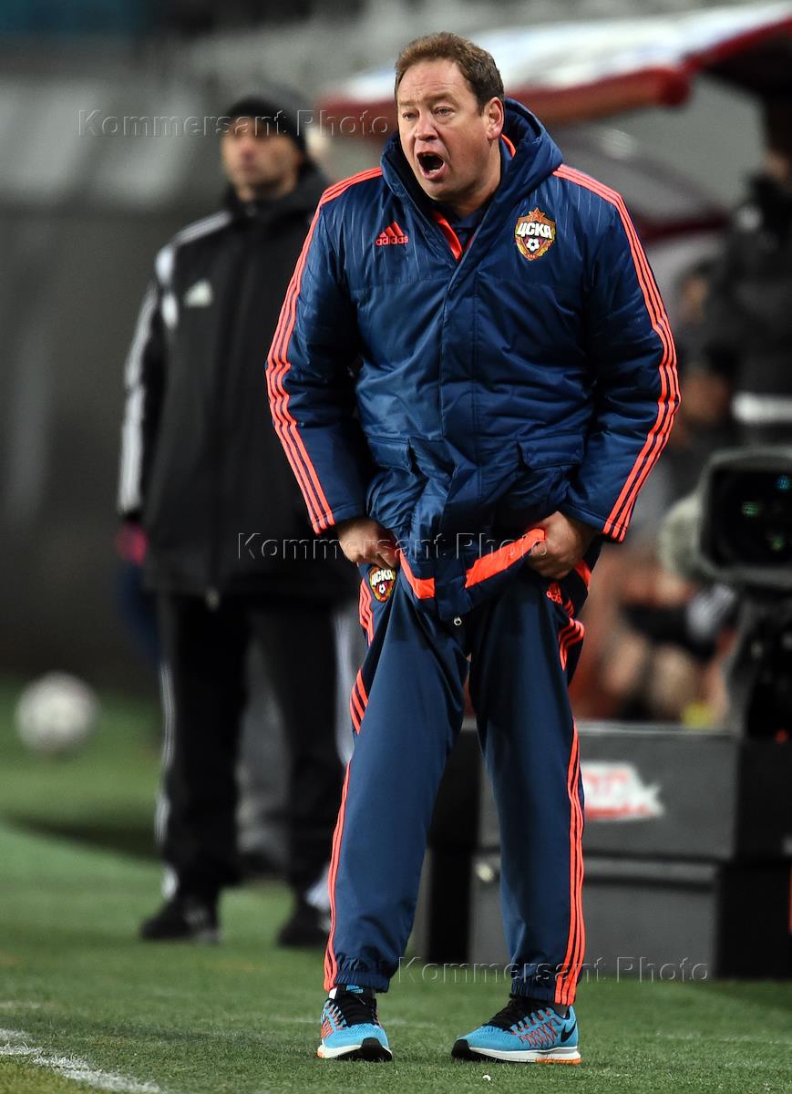 РОСГОССТРАХ Чемпионат России по футболу 2015/2016. 21-й тур. Матч между командами "ЦСКА" (Москва) и "Кубань"(Краснодар) на стадионе "Арена Химки". Главный тренер команды ЦСКА Леонид Слуцкий во время матча.