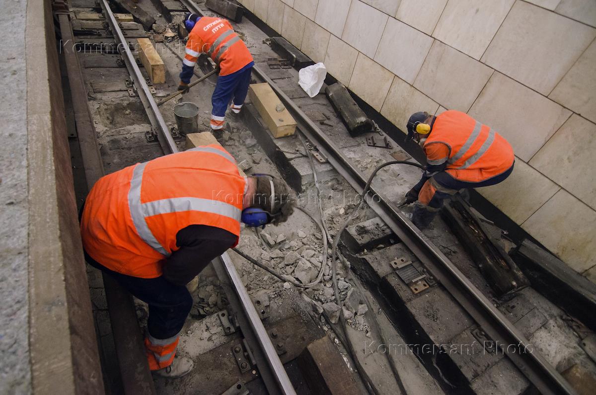 Жанровая фотография. Технологическое окно на Замоскворецкой линии метро. Работа технических служб на станции метро "Тверская".
