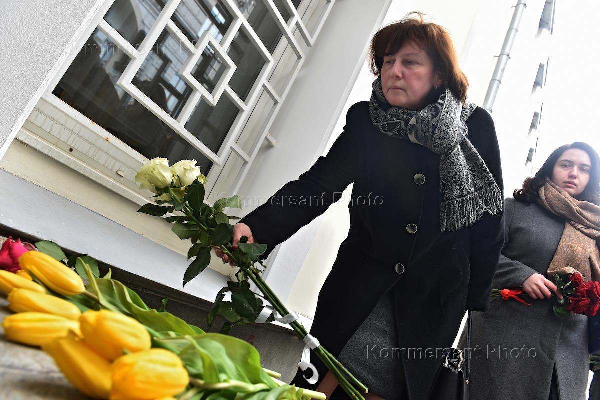 Люди несут цветы к зданию Посольству Бельгии в Москве в память о погибщих в аэропорту Брюсселя 22 марта 2016 года, где произошли два взрыва и два взрыва произошли в метро Брюсселя.