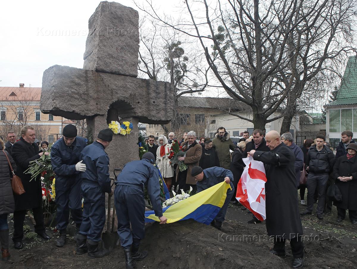 Похороны украинского журналиста Георгия Гонгадзе, убитого в 2000 году, прошли во дворе церкви Николая Набережного на Подоле.