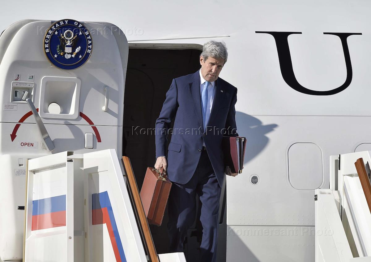 State secretary of the USA John Kerry is during his arrival to airport 'Vnukovo-3'.