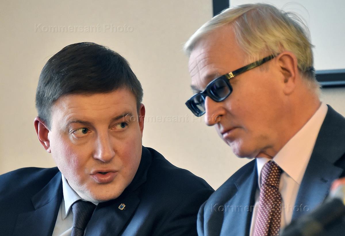 IX Неделя российского бизнеса. Президент Российского союза промышленников и предпринимателей (РСПП) Александр Шохин (слева) во время презентации экономического и инвестиционного потенциала Псковской области.