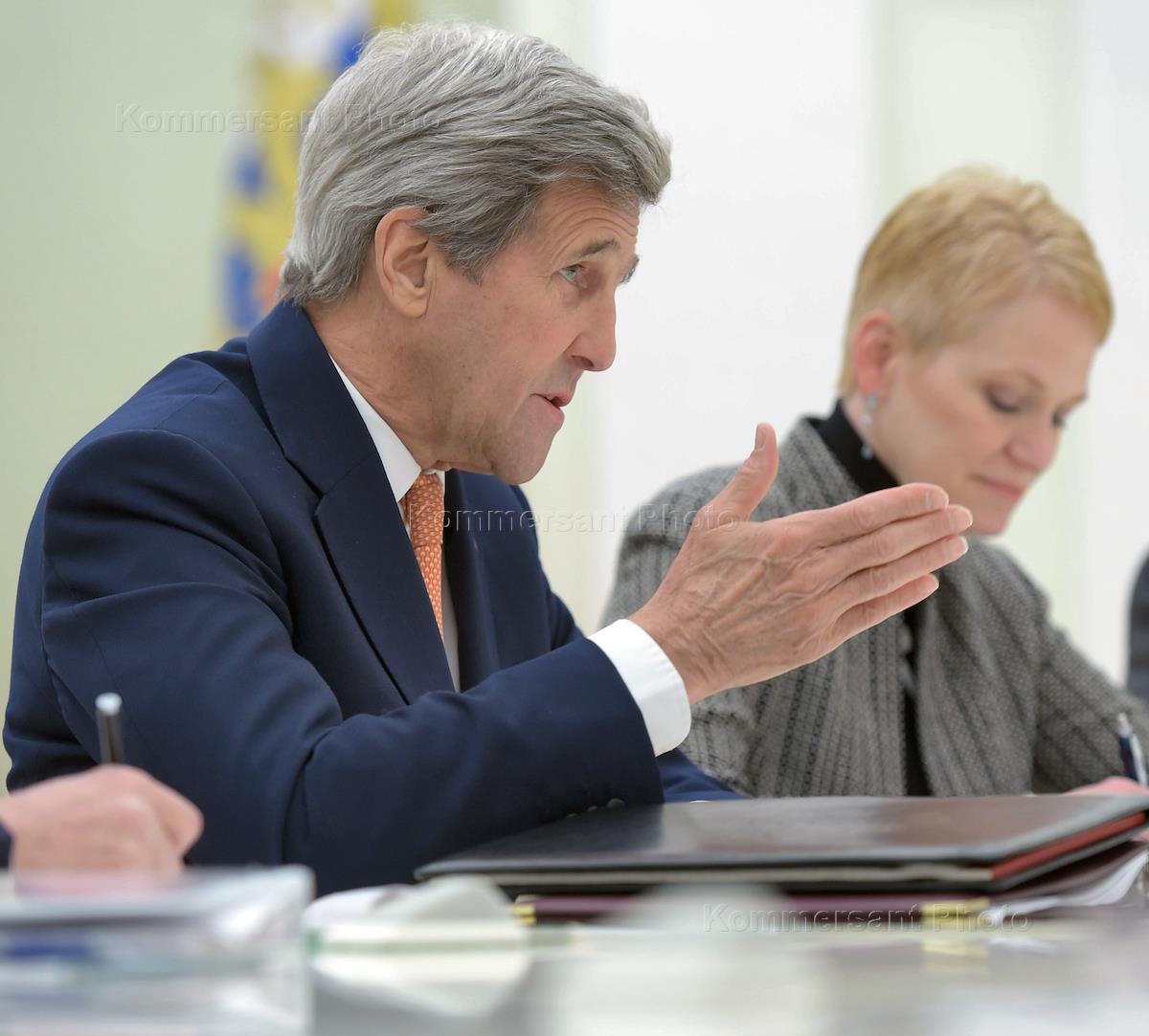 Встреча президента России Владимира Путина с государственным секретарем Соединенных Штатов Америки (США) Джоном Керри прошла в Кремле. Государственный секретарь Соединенных Штатов Америки (США) Джон Керри (справа) во время встречи.