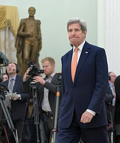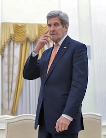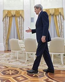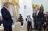 The meeting of the President of Russia Vladimir Putin and State secretary of the USA John Kerry held in the Kremlin. State secretary of the USA John Kerry is before the meeting.