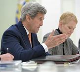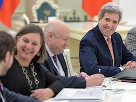 The meeting of the President of Russia Vladimir Putin and State secretary of the USA John Kerry held in the Kremlin. Assistant of the State secretary of the USA on European and Eurasian affairs Viktoria Nuland (left) and State secretary of the USA John Kerry are during the meeting.