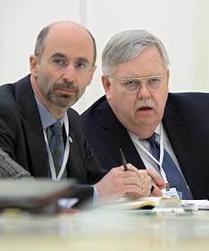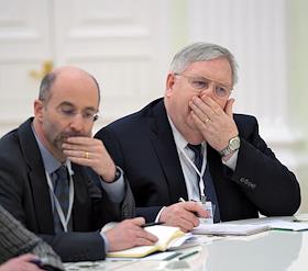 The meeting of the President of Russia Vladimir Putin and State secretary of the USA John Kerry held in the Kremlin. Embassador of the USA in Russia John Tefft (right) is during the meeting.