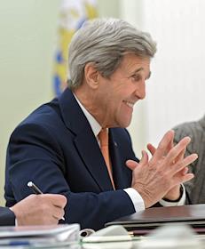 The meeting of the President of Russia Vladimir Putin and State secretary of the USA John Kerry held in the Kremlin. State secretary of the USA John Kerry is during the meeting.