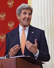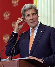 The meeting of the President of Russia Vladimir Putin and State secretary of the USA John Kerry held in the Kremlin. State secretary of the USA John Kerry (right) is during the meeting.