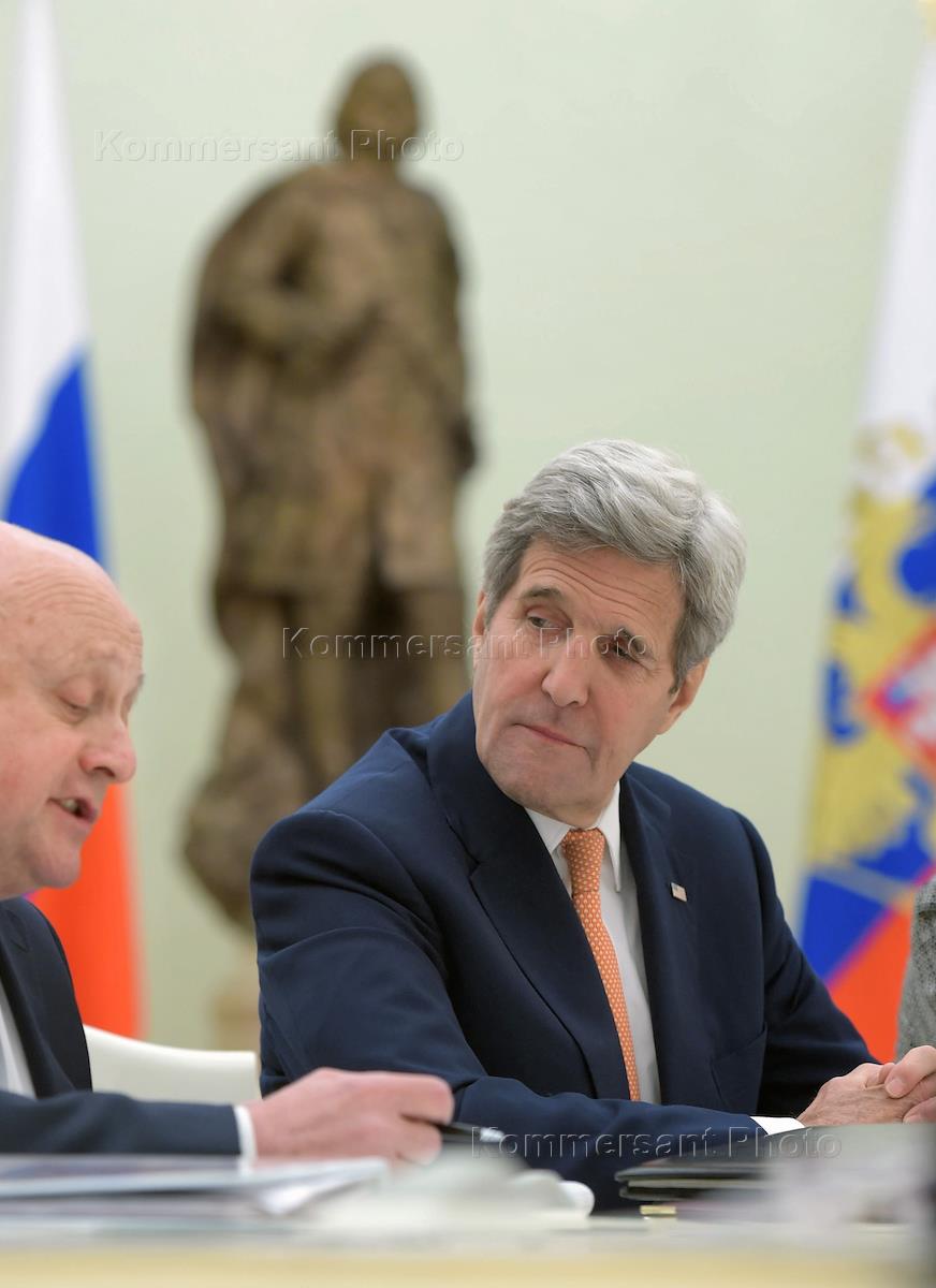 Встреча президента России Владимира Путина с государственным секретарем Соединенных Штатов Америки (США) Джоном Керри прошла в Кремле. Государственный секретарь Соединенных Штатов Америки (США) Джон Керри (справа) во время встречи.