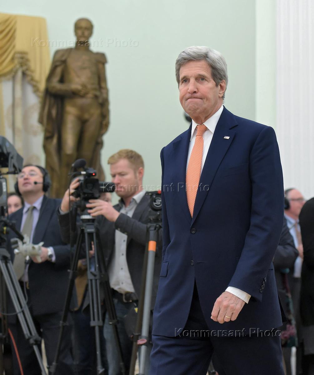 The meeting of the President of Russia Vladimir Putin and State secretary of the USA John Kerry held in the Kremlin. State secretary of the USA John Kerry is during the meeting.