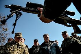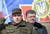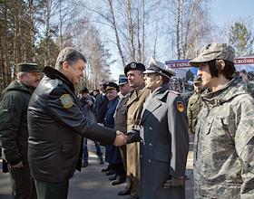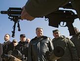 День Национальной гвардии Украины. Мероприятиях по случаю второй годовщины создания Национальной гвардии Украины (НГУ) прошли в учебном центре НГУ в селе Новые Петровцы. Президент Украины Петр Порошенко (справа) во время посещения учебного центра НГУ.