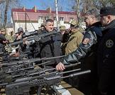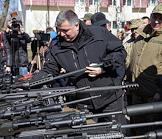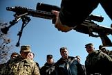 День Национальной гвардии Украины. Мероприятиях по случаю второй годовщины создания Национальной гвардии Украины (НГУ) прошли в учебном центре НГУ в селе Новые Петровцы. Министр внутренних дел Украины Арсен Аваков (в центре) и секретарь Совета национальной безопасности и обороны Украины Александр Турчинов (справа) во время посещения учебного центра НГУ.