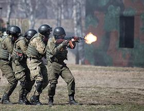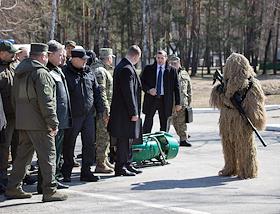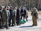 День Национальной гвардии Украины. Мероприятиях по случаю второй годовщины создания Национальной гвардии Украины (НГУ) прошли в учебном центре НГУ в селе Новые Петровцы. Министр внутренних дел Украины Арсен Аваков (в центре)во время посещения учебного центра НГУ.