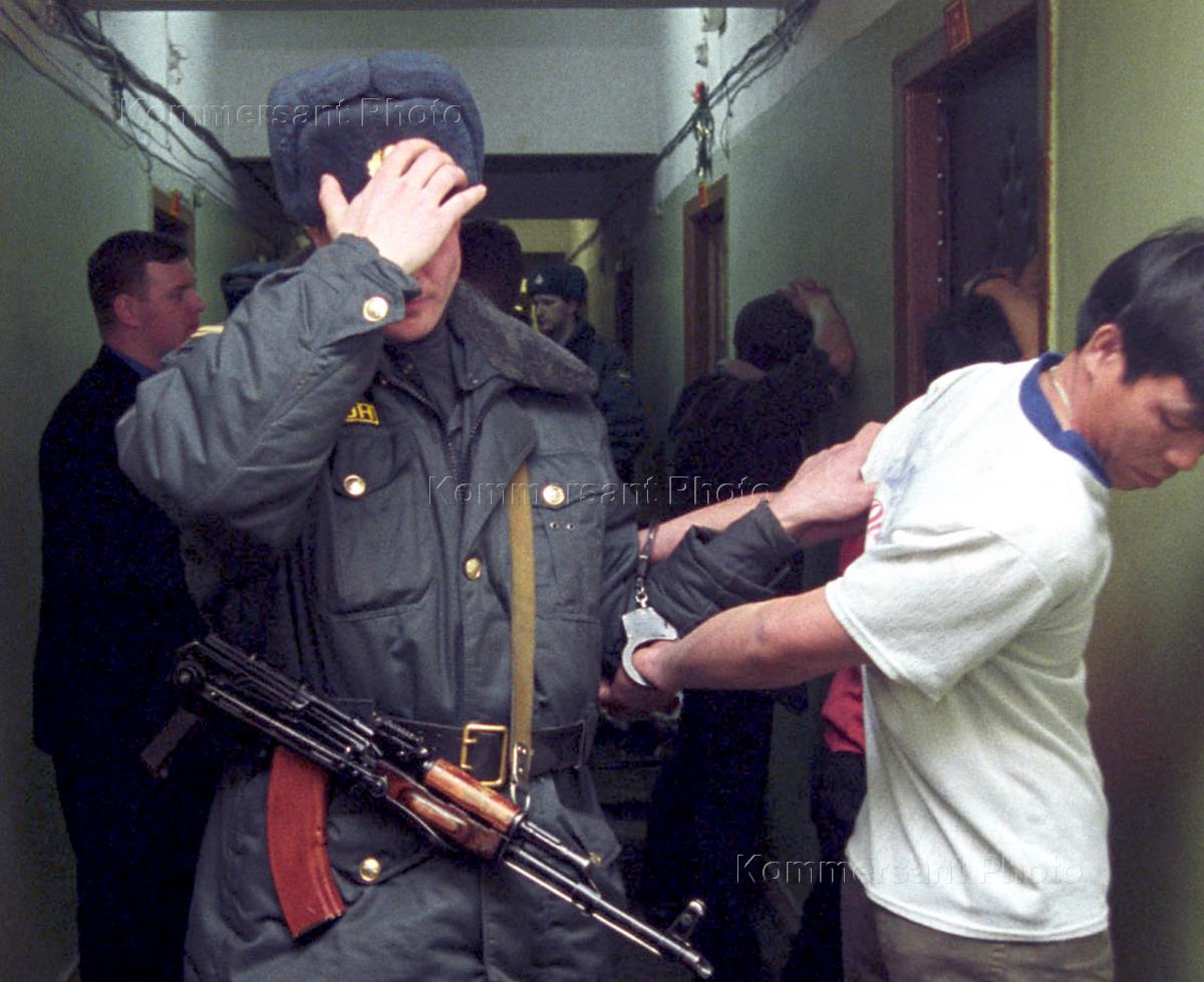 Рейд московской милиции по выявлению нелегального проживания граждан Вьетнама. Рейд состоялся во вьетнамском общежитии на Огородном проезде.
