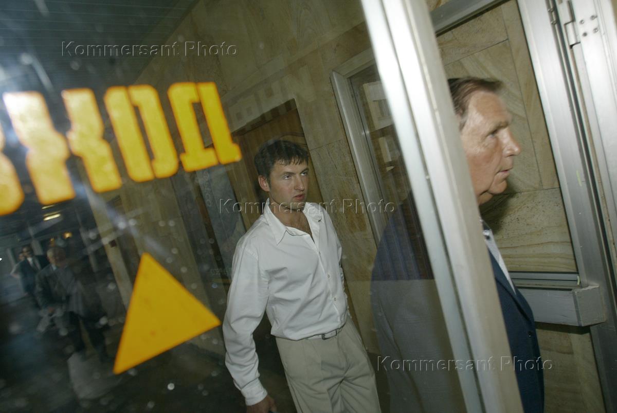 New russian hochey team coach Viktor Tikhonov (right) enters the office of Russian Olympic Committee.
