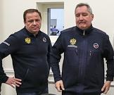 Заместитель генерального директора ФГУП "Центр эксплуатации объектов наземной космической инфраструктуры" (ЦЭНКИ) Андрей Охлопков (слева) и заместитель председателя правительства Дмитрий Рогозин (справа) на космодроме "Восточный".