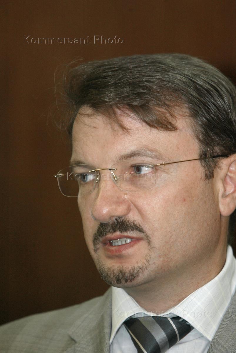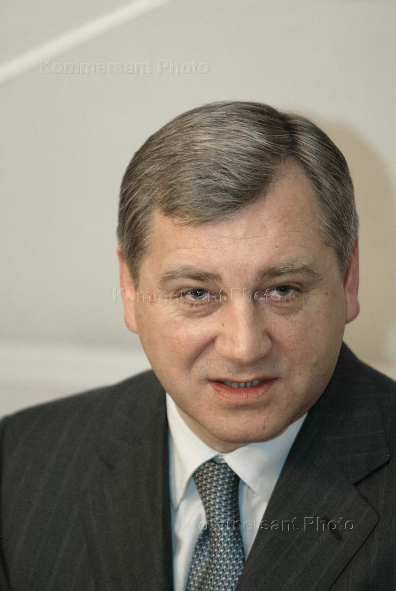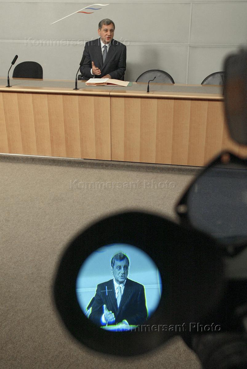 Заместитель Председателя Правительства России Борис Алешин во время пресс-конференции, посвященной итогам обсуждения на заседании Правительства вопроса о ходе реформирования предприятий и организаций авиационной промышленности. Пресс-конференция состоялась в Доме Правительства.