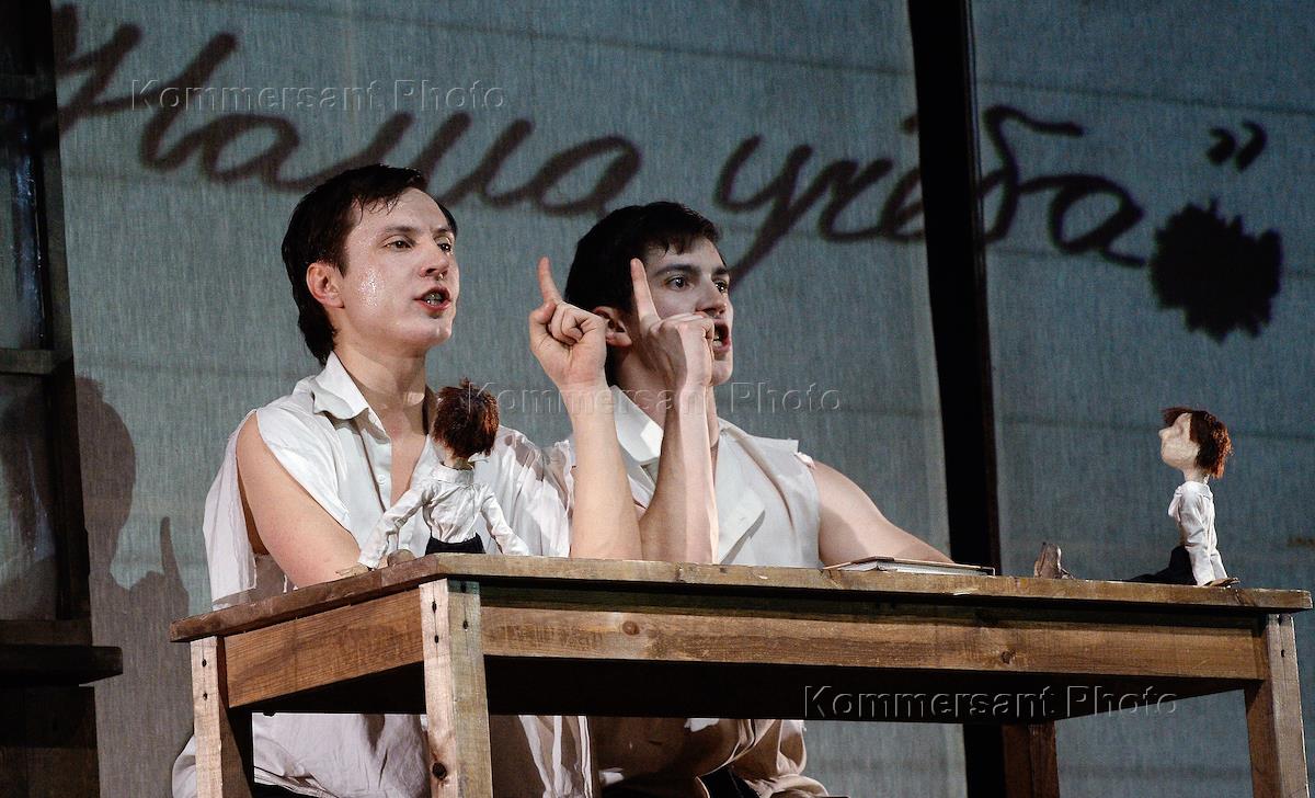 Театральный фестиваль "Золотая маска". Cпектакль "Толстая тетрадь" по роману Аготы Кристоф в постановке режиссера Александр Янушкевич Пермского театра кукол на сцене Центра имени Вс.Мейерхольда.