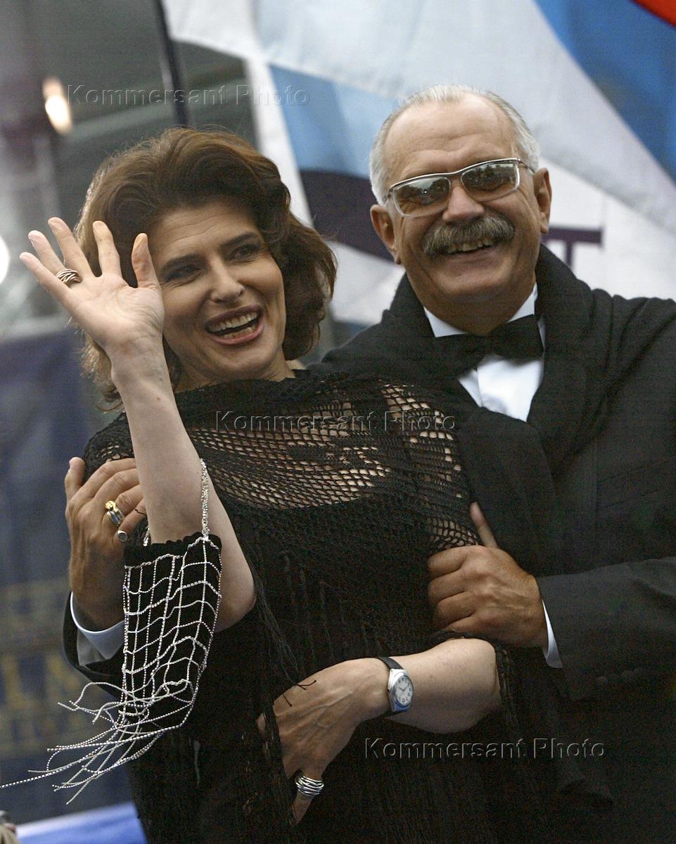 French actress Fanny Ardant (left) and russian film director Nikita Mikhalkov (right) at the final ceremony of the XXV Moscow International Film Festival at "Pushkinsky" hall.