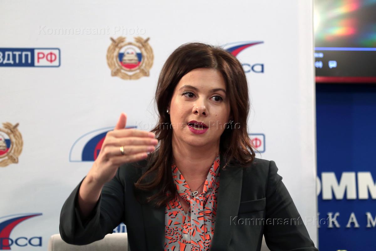 Пресс-конференция, презентация проекта ГИБДД России "Держи дистанцию". Президент экспертного центра "Движение без опасности" Наталья Агре во время пресс-конференции.
