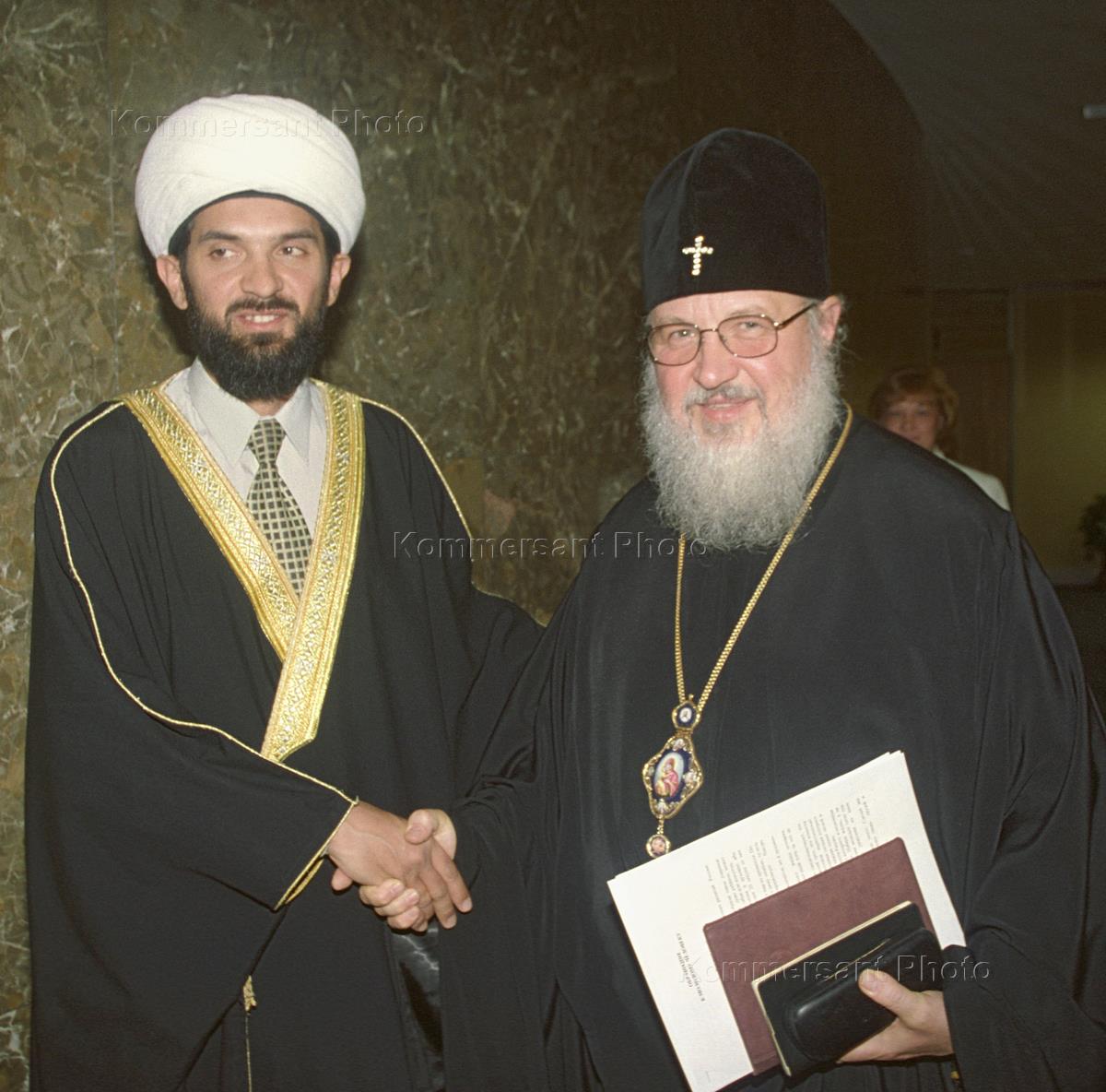 Митрополит Смоленский и Калининградский Кирилл (справа) во время пресс-конференции, посвященной началу Всероссийской антинаркотической акции "Поезд в будущее". Пресс-конференция прошла в пресс-центре столичной мэрии.