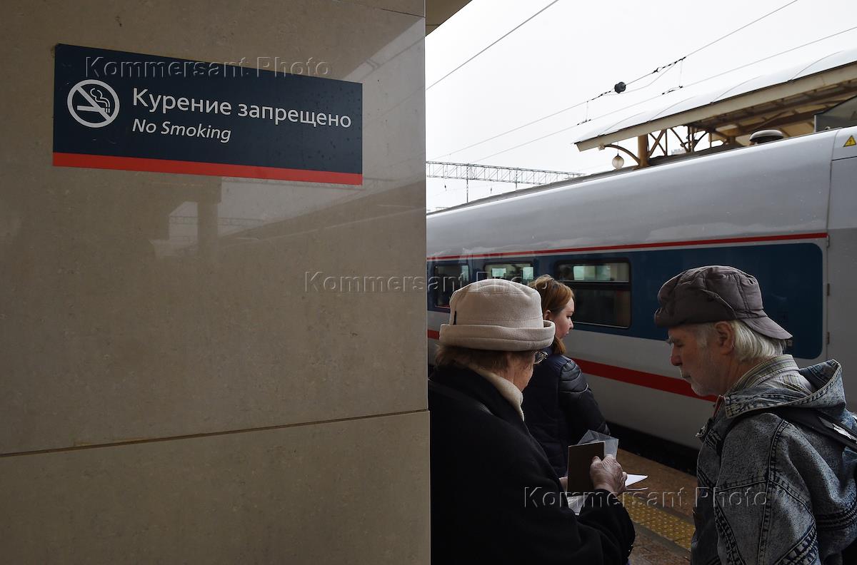Жанровая фотография. Прибытие скоростного поезда "Стриж", курсирующего в сообщении "Москва – Нижний Новгород", прошла на Курском вокзале.