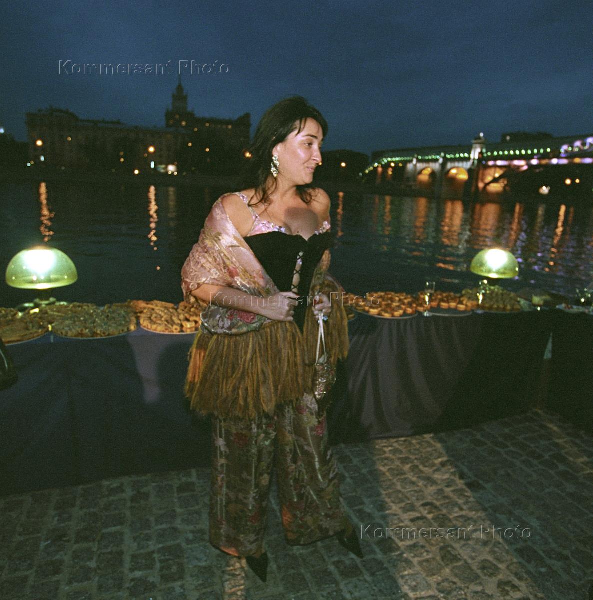 Chairman of the Supervisory Council of the Renaissance Capital Investment Group Alexander Shokhin (right) embraces his wife at the lunch devoted to the opening of the XXV Moscow International Film Festival.