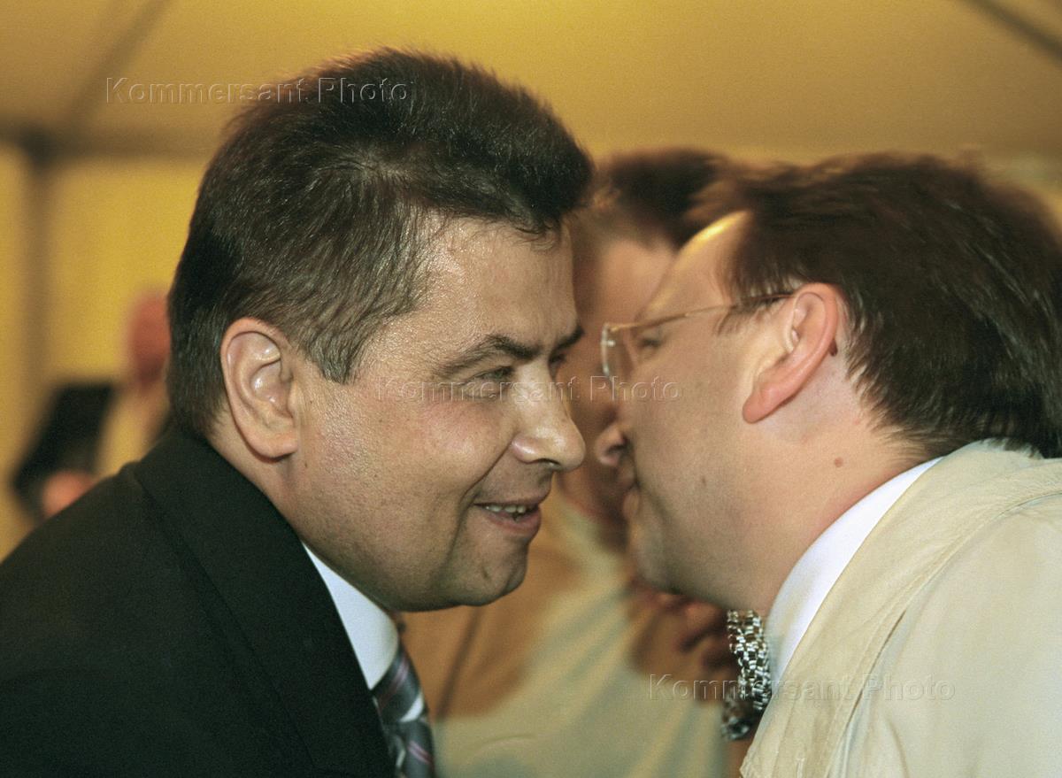 Singer Nikolay Rastorgouev (left) and the head of the Russian Filmmaker's Union, director Nikita Mikhalkov (right) at the lunch devoted to the opening of the XXV Moscow International Film Festival.