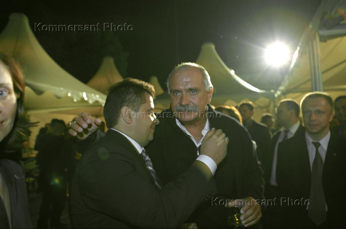 Singer Nikolay Rastorgouev (left) and the head of the Russian Filmmaker's Union, director Nikita Mikhalkov (right) at the lunch devoted to the opening of the XXV Moscow International Film Festival.