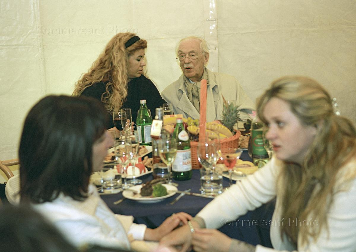 Писатель Сергей Михалков (второй справа) с женой Юлией на обеде, посвященном открытию юбилейного XXV Московского международного кинофестиваля.