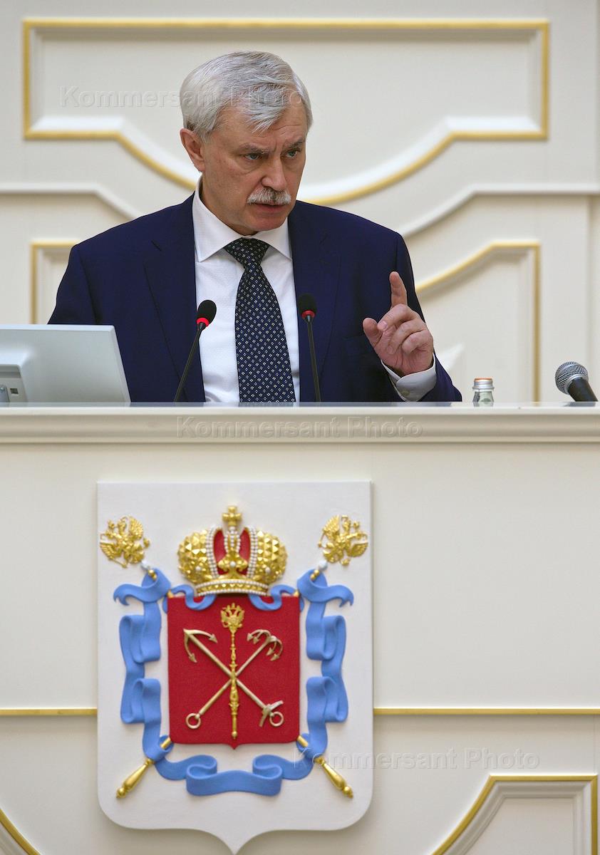 Губернатор Санкт-Петербурга Георгий Полтавченко во время выступления с годовым отчетом перед депутатами Закодательного собрания Санкт-Петербурга.