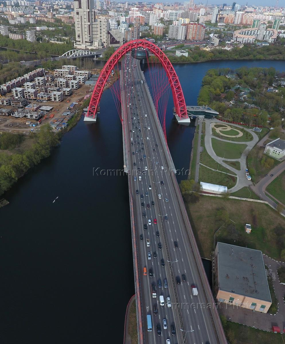 Виды Москвы. Вантовый Живописный мост через Москву-реку в Серебряном бору.