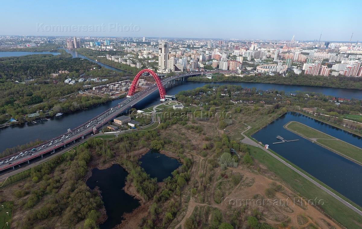 Виды Москвы. Вантовый Живописный мост через Москву-реку в Серебряном бору.