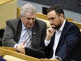 Член Комитета Государственной Думы России по энергетике Юрий Липатов (слева) и первый заместитель председателя комитета ГД России по обороне Виктор Заварзин (справа) во время пленарного думского заседания.