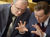 Председатель комитета Государственной думы России по финансовому рынку Николай Гончар (слева) и заместитель председателя Государственной думы России Владимир Васильев (справа) на пленарном думском заседании.