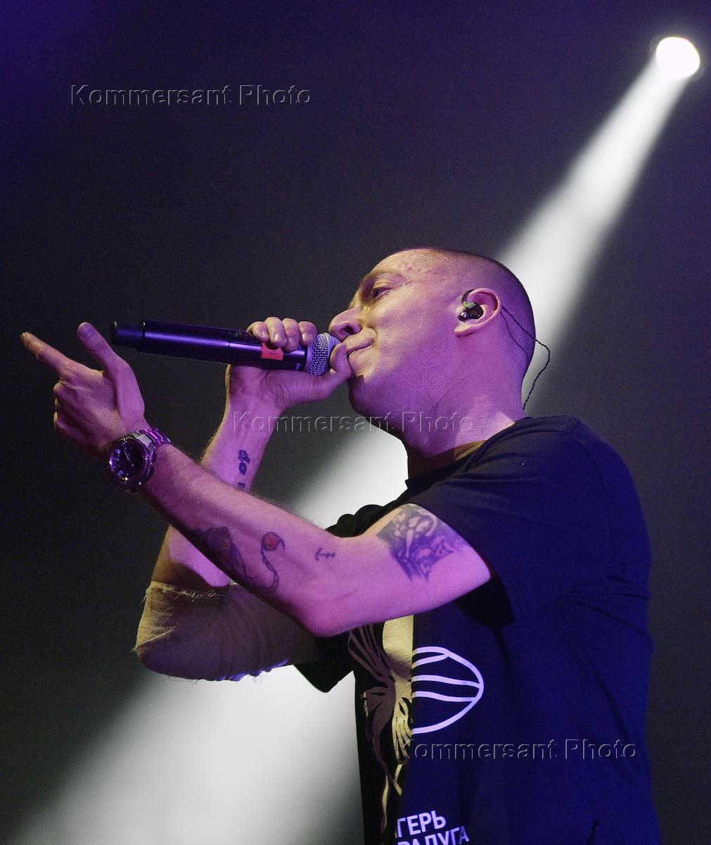 Рэп и грайм исполнитель Oxxxymiron (Оксимирон) во время выступления на сольном концерте в клубе Stadium Live.
