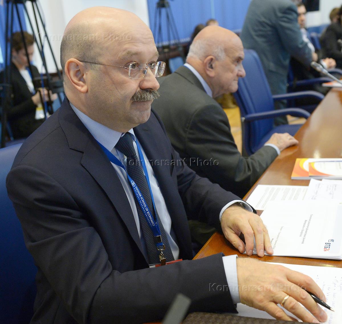 XVII Международная научная конференция по проблемам развития экономики и общества прошла в НИУ "Высшая школа экономики" (ВШЭ). Президент Российского союза промышленников и предпринимателей (РСПП) Александр Шохин во время конференции.