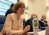 XVII Международная научная конференция по проблемам развития экономики и общества прошла в НИУ "Высшая школа экономики" (ВШЭ). Первый заместитель председателя Центрального Банка России Ксения Юдаева во время пленарной сессии "Макроэкономика".