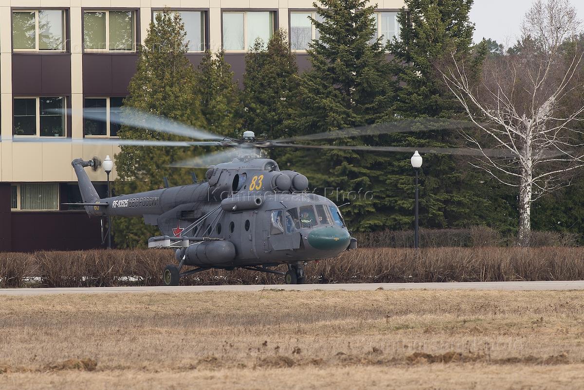 Репетиция Парада Победы. Тренировка воздушной части Парада на аэродроме в Кубинке. Вертолет Ми-8.