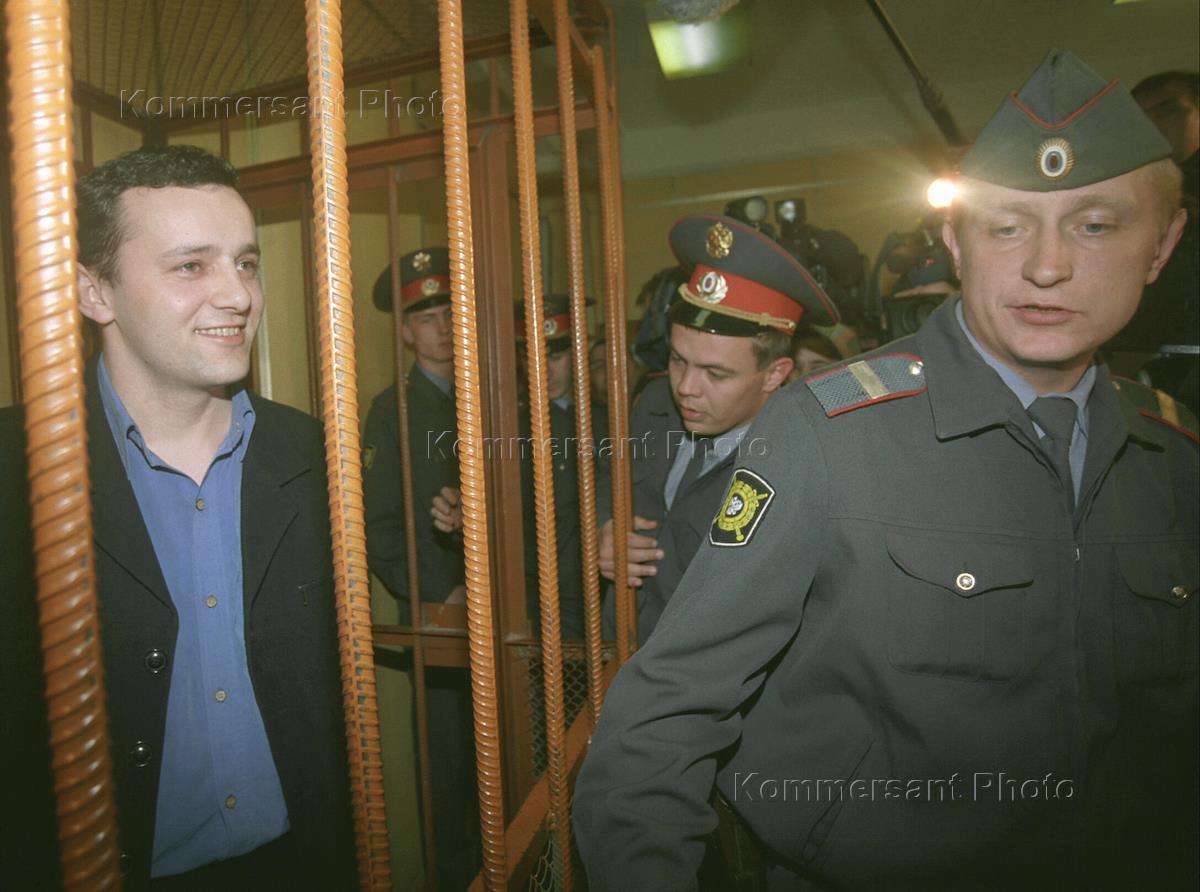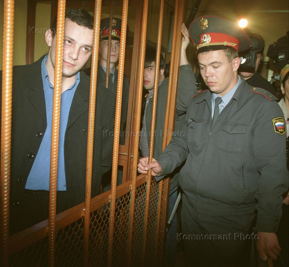 Judge announces a sentence to Zaurbek Talkhigov (left) convicted of complicity to terrorists that had taken hostages in the Dubrovka theatre.