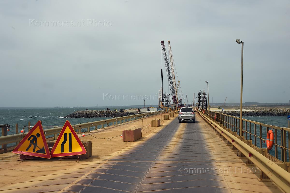 Строительство моста через Керченский пролив. Табличка "Опасная зона".