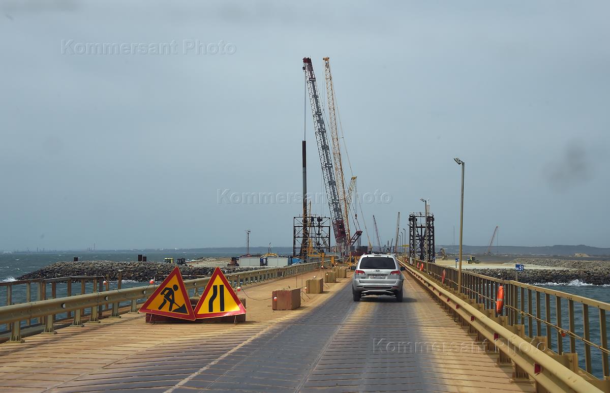 Строительство моста через Керченский пролив. Табличка "Опасная зона".