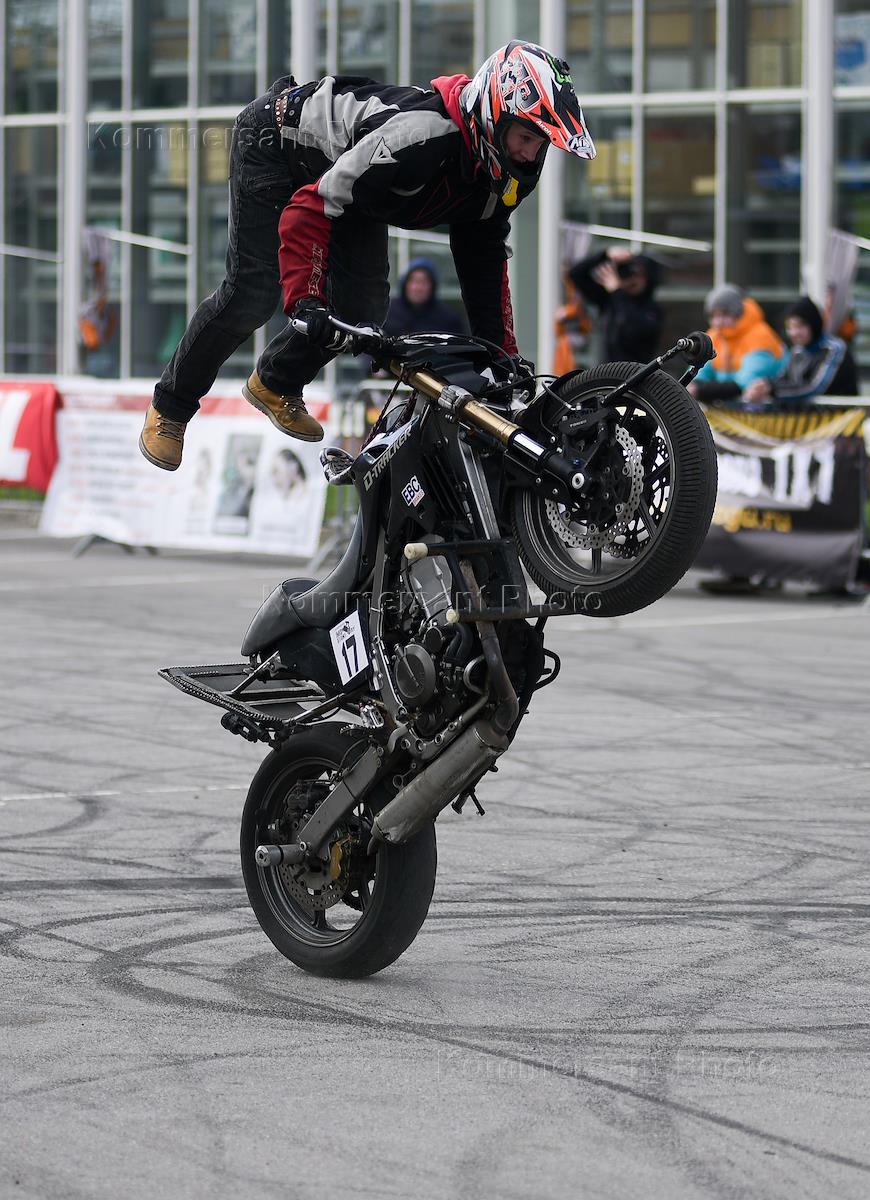 VII Санкт-Петербургский международный мотосалон "IMIS- 2016" в ТВК "Гарден Сити". Участники турнира по мото-фристайлу "IMIS STUNT DAY" в рамках проведения мотосалона.