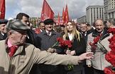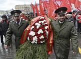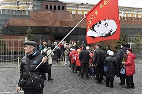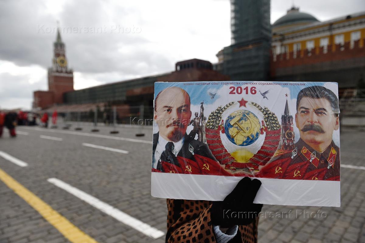 Церемония возложения цветов к Мавзолею на Красной площади, в 146-ю годовщину со дня рождения Владимира Ленина. Участники церемонии, организованной Коммунистической партией России (КПРФ).