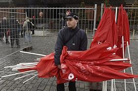 Церемония возложения цветов к Мавзолею на Красной площади, в 146-ю годовщину со дня рождения Владимира Ленина. Участник церемонии, организованной Коммунистической партией России (КПРФ).