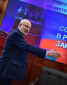 Специальное заседание Совета при президенте России по развитию гражданского общества и правам человека (СПЧ) по теме "Переселение соотечественников в Россию: проблемы законодательства и практики" прошло в здании Администрации президента России. Председатель Совета при президенте России по развитию гражданского общества и правам человека Михаил Федотов во время заседания.